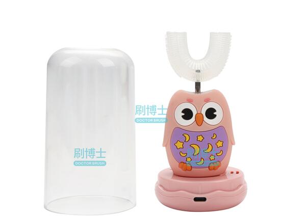 刷博士兒童電動牙刷u型,其牙刷機身在本機外增加卡通硅膠防護套,充滿童趣的模樣,深度孩子們歡喜,在增加趣味性吸引力的同時增加防滑性。同時U型牙托制作時參考了人體標準牙齒形狀,模擬兒童牙齒形狀,入口后刷毛和牙齒45°全包裹貼合,無需手動調整讓寶寶養成正確刷牙好習慣。