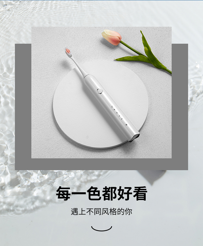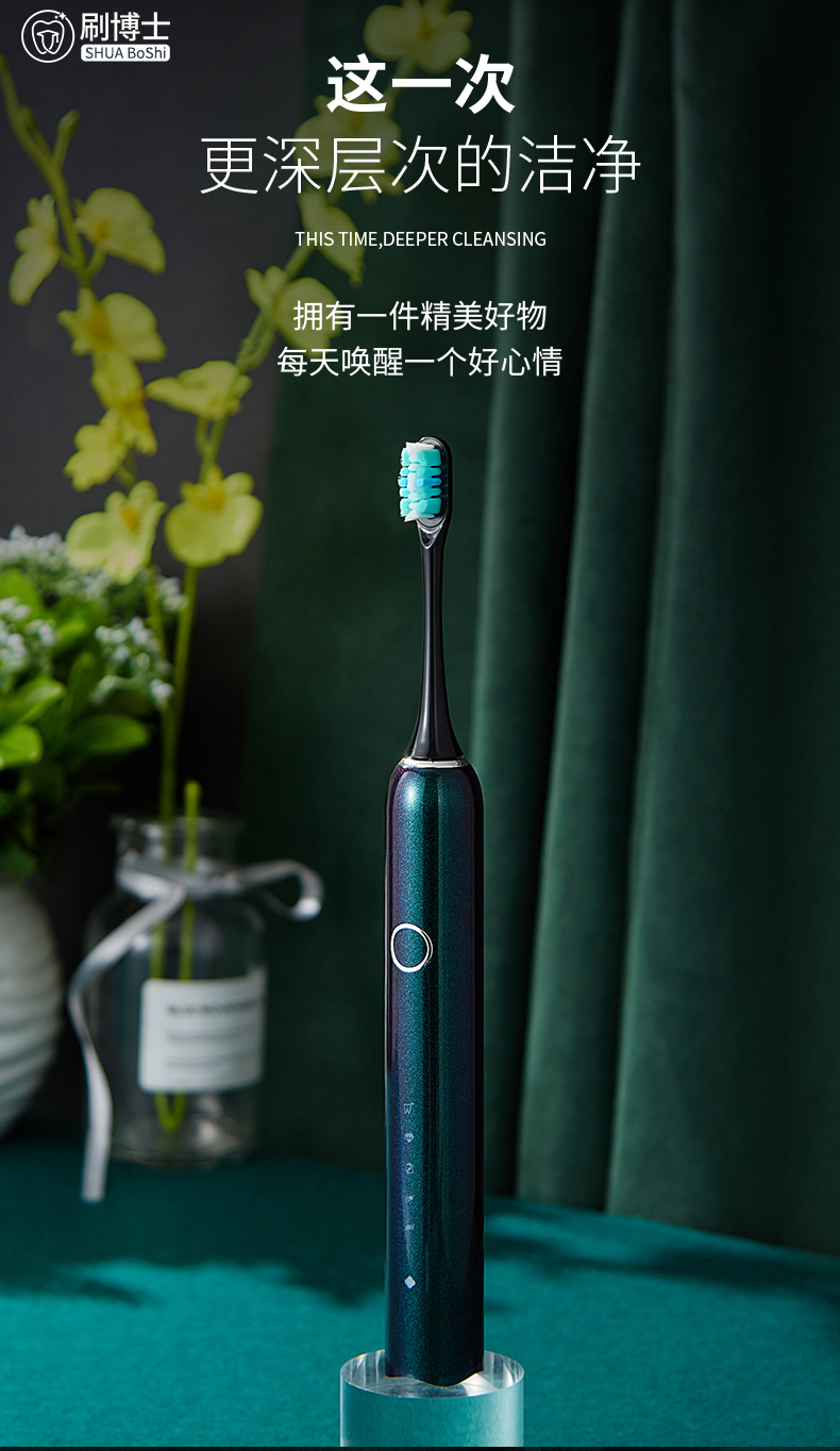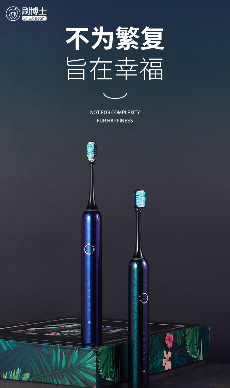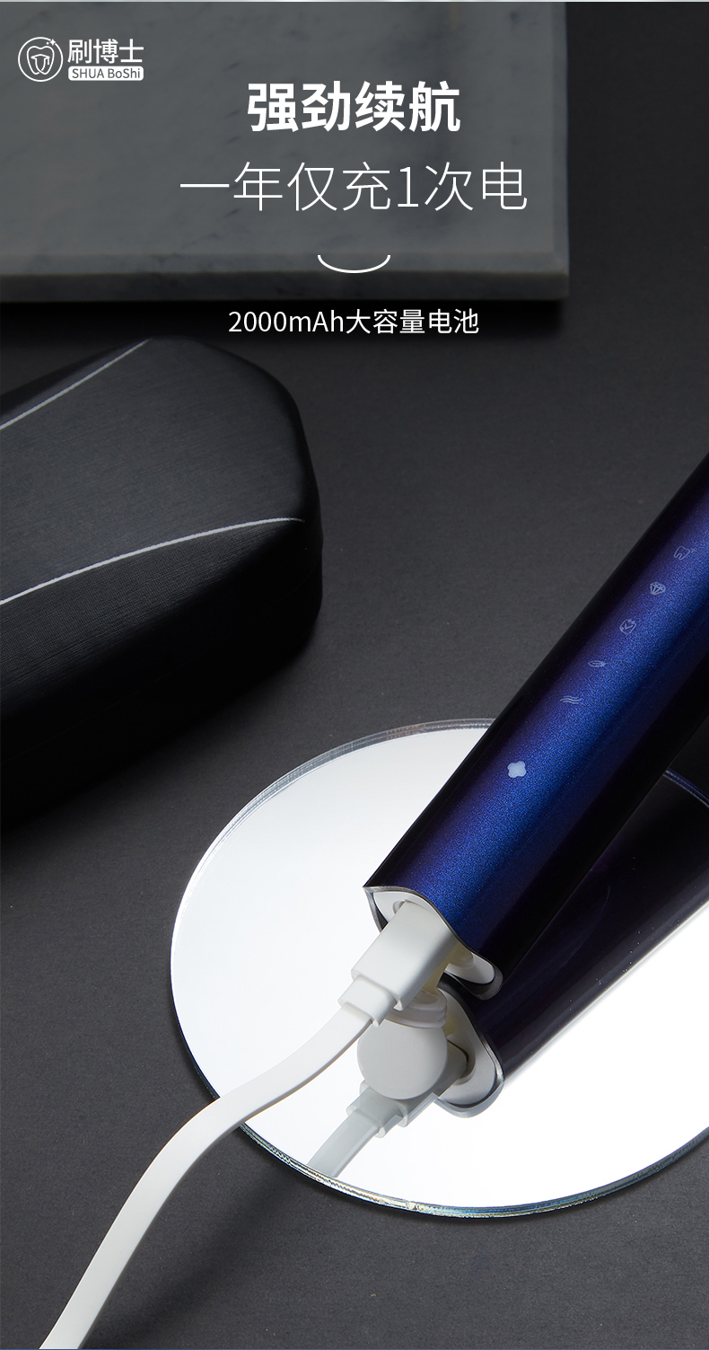 刷博士【S300智能聲波電動牙刷】是一款集潔齒、護理及體驗煥然一新于一身的多功能聲波電動牙刷,采用一鍵式的簡約設計,5檔清潔模式,隨心掌控;此外,植入了模式記憶功能,牢牢記住你的刷牙習慣,下次刷牙,無需費時再次選擇;強勁的續航功能,一年僅充1次電;高顏值的顏色設計,皓月白、睿智黑、深邃藍等多種顏色選擇,遇上不同風格的你。