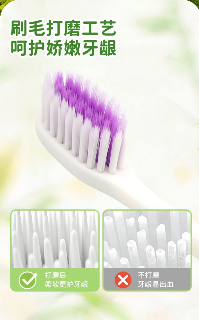1、抗菌護齦:0.12mm 超纖細柔抗菌軟毛 + 高磨圓工藝,雙重呵護,溫和清潔換牙期牙齦,適配兒童口腔使用。
