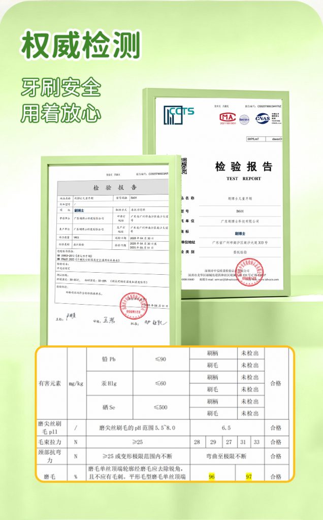 3、安全安心:食品級軟包膠 + 99.9% 抗菌認證刷毛,無有害添加,守護孩子成長口腔安全。